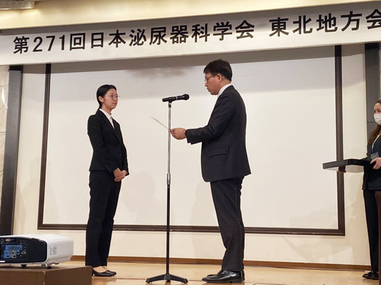 この度、令和7年11月15日に盛岡市で開催された第271回日本泌尿器科学会東北地方会におきまして、優秀演題賞を受賞いたしましたのでご報告申し上げます。